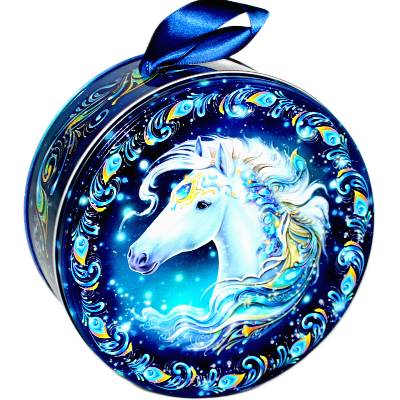 - Сладкий новогодний подарок ВИП в жестяной упаковке весом 1550 грамм по цене до 2000 рублей в Кирсанове
